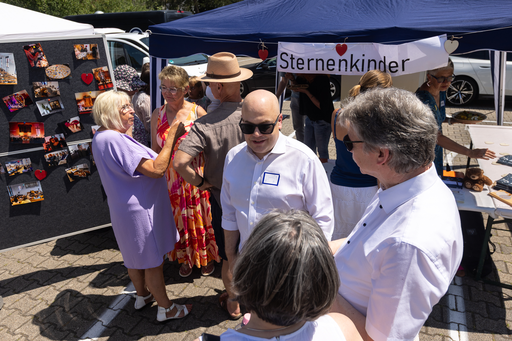 Am 21. und 22. Juni 2025 fanden die Bezirkstage in Wiesenbach statt. Neben Gottesdienst, Musik, Vorträgen, Spiel und Streetfood gab es auch Informationsstände. Auch zum Thema Sternenkinder. Neben Helga Schmidtke und Jeremy Dawson waren auch viele Geschwister da, die an SternenLicht 2024 in Hanau teilgenommen haben. Ein kleines SternenLicht-Familientreffen.